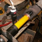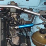 Zuerst verpassten wir unserer extrem schwammigen Vorderachse neue Sportstoßdämpfer. Wer den Kadett kennt, weiß, dass es hier nicht mit einem einfachen Dämpfertausch getan ist. Denn hier werden nur die innenliegenden Patronen ausgetauscht, da die Hülsen fest mit dem Federbein verbunden sind. Die mittlerweile 21 Jahre alten Teile wehrten sich mächtig, hatten aber letztlich gegen rohe Gewalt keine Chance. Nachdem die Dämpfer vom Typ „Luftpumpe“ nun draußen sind, sollte das Fahrverhalten deutlich besser sein.