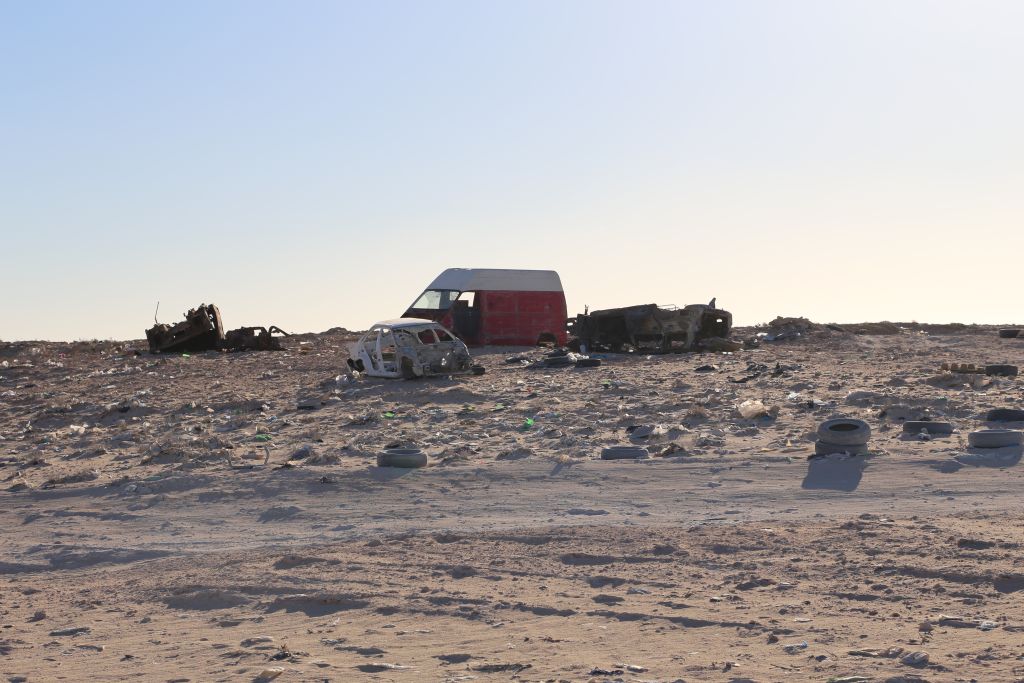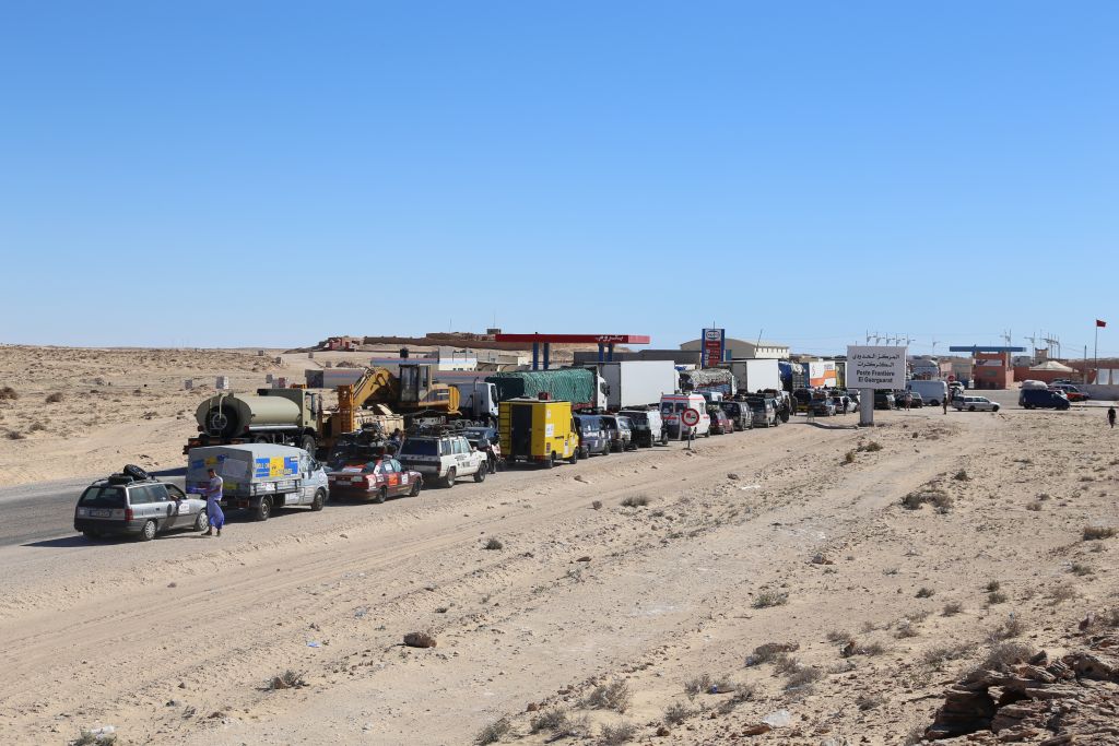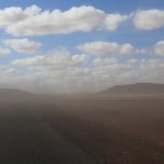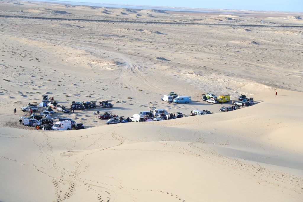 Heute kamen wir in den Genuss geballter Staatsmacht und wirklich echten Landesgrenzen. Als Bewohner der EU hat man sowas ja schon fast vergessen. Nach vier Stunden Fahrt von Dakhla durch die Einöde der südlichen Westsahara erreichten wir die Grenze zu Mauretanien. Die Kontrollen von örtlicher Polizei, königlicher Polizei, Militär und Zoll zogen sich hin… und das in beiden Staaten. Die Sonne brennt, der Wind treibt Sand heran, Langeweile. Als es endlich geschafft war, war die Sonne schon weg und wir kamen im Dunklen zur Versteckten Düne. Hier schlugen wir unser Nachtlager auf und genossen die klare Luft, die Sterne und den feinen Sand der Dünen. Um unsere Gemüsepfanne mit Cous Cous beneidete uns so mancher.