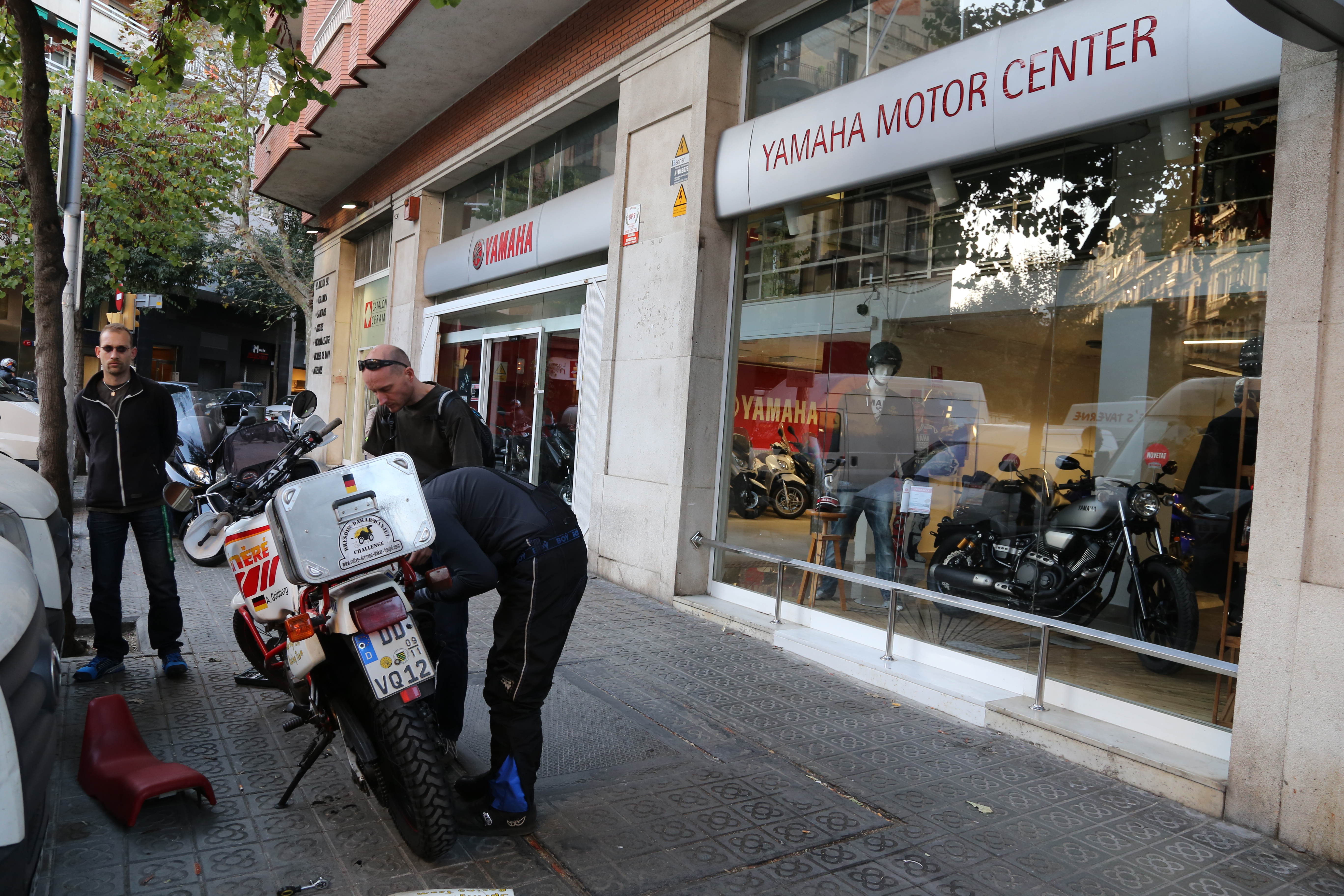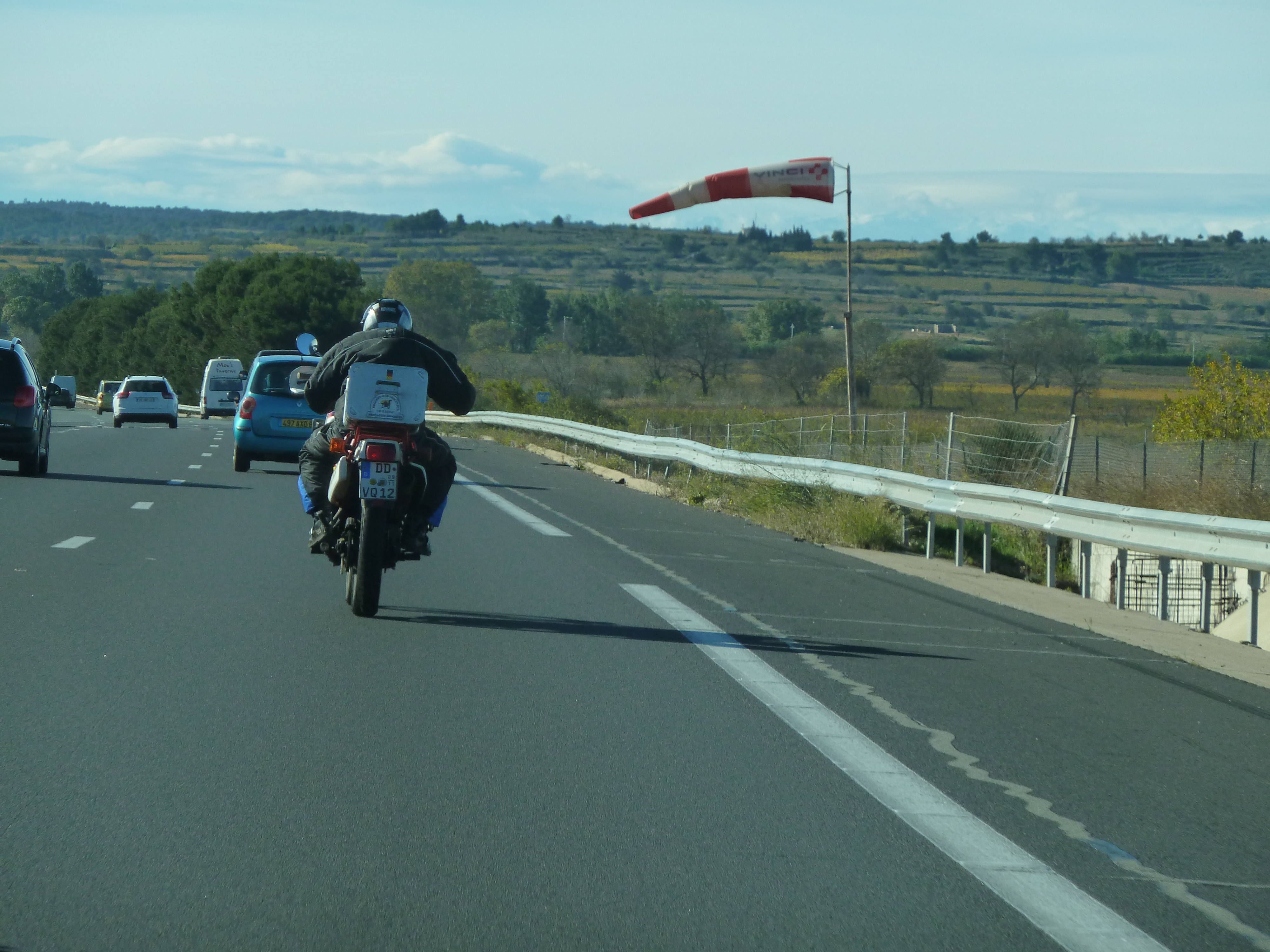 Heut Morgen ging es erstmal auf die Suche nach einem Yamaha-Händler, um ein geeignetes Ersatzteil zu finden. Leider ist in Frankreich heute Feiertag, so dass wir, unter anderem in Nimes und Montpellier, nicht erfolgreich waren und die Reise mit sehr viel Seitenwind nach Barcelona weiterging. In der City von Barcelona wurden wir endlich fündig, nur leider gab es keinen Ersatzauspuff. Dafür aber einen neuen Dichtring, damit die Inkontinenz des japanischen Motors behoben werden kann. Von Barcelona ging es weiter zum heutigen Etappenziel nach Valencia (760 km). Nach einem kleinen Abendbrot wird nun der Motor hoffentlich abgedichtet.