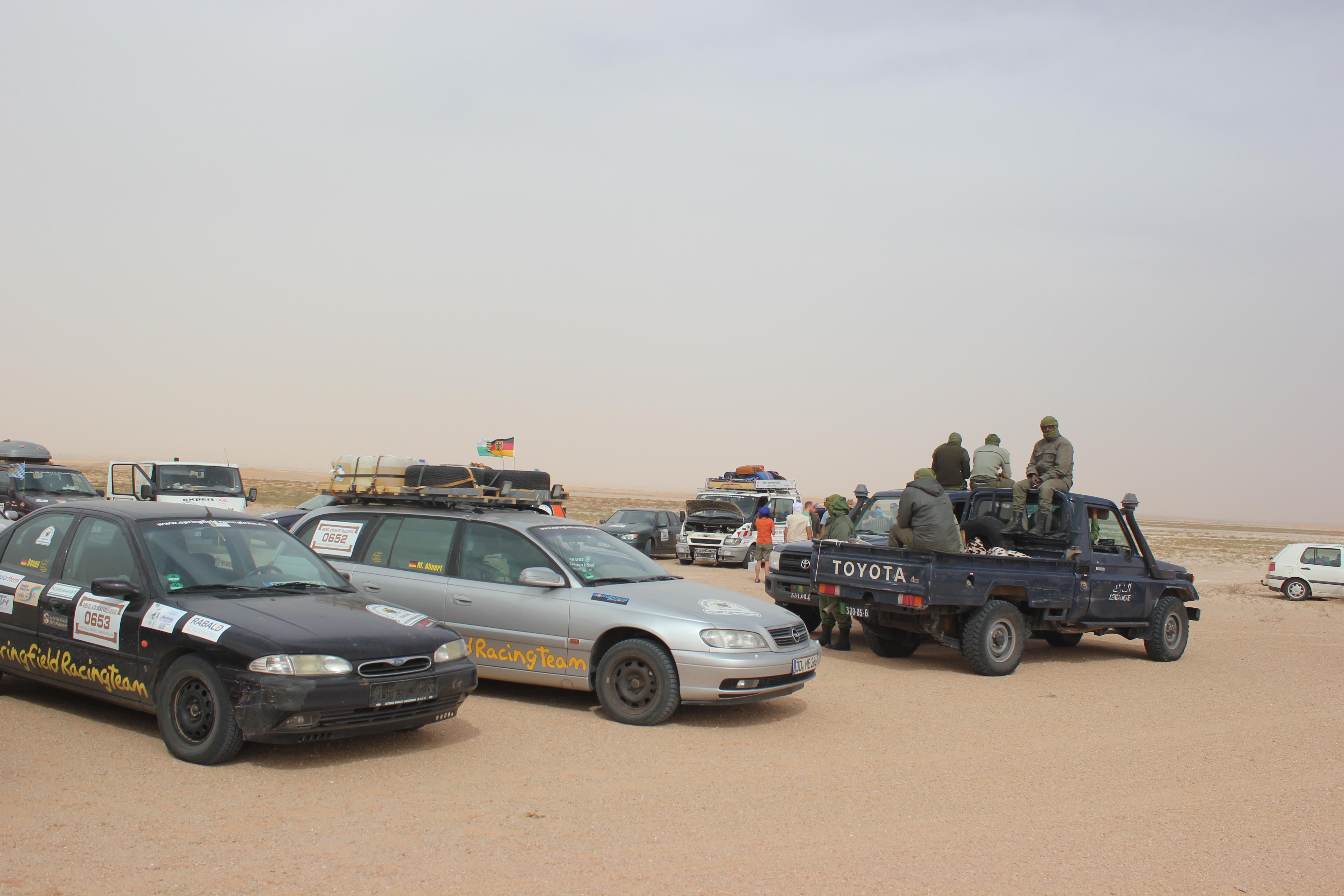 Am nächsten Morgen ging es dann nach dem Briefing weiter. Keine 5 km gekommen, da versagten die ersten Fahrzeuge kurz- bzw.langfristig ihren Dienst. Ein Volvo sprang nicht mehr an und gab komische Geräusche von sich. Weiter Einzelheiten später. Ansonsten ging es durch die Wüste…