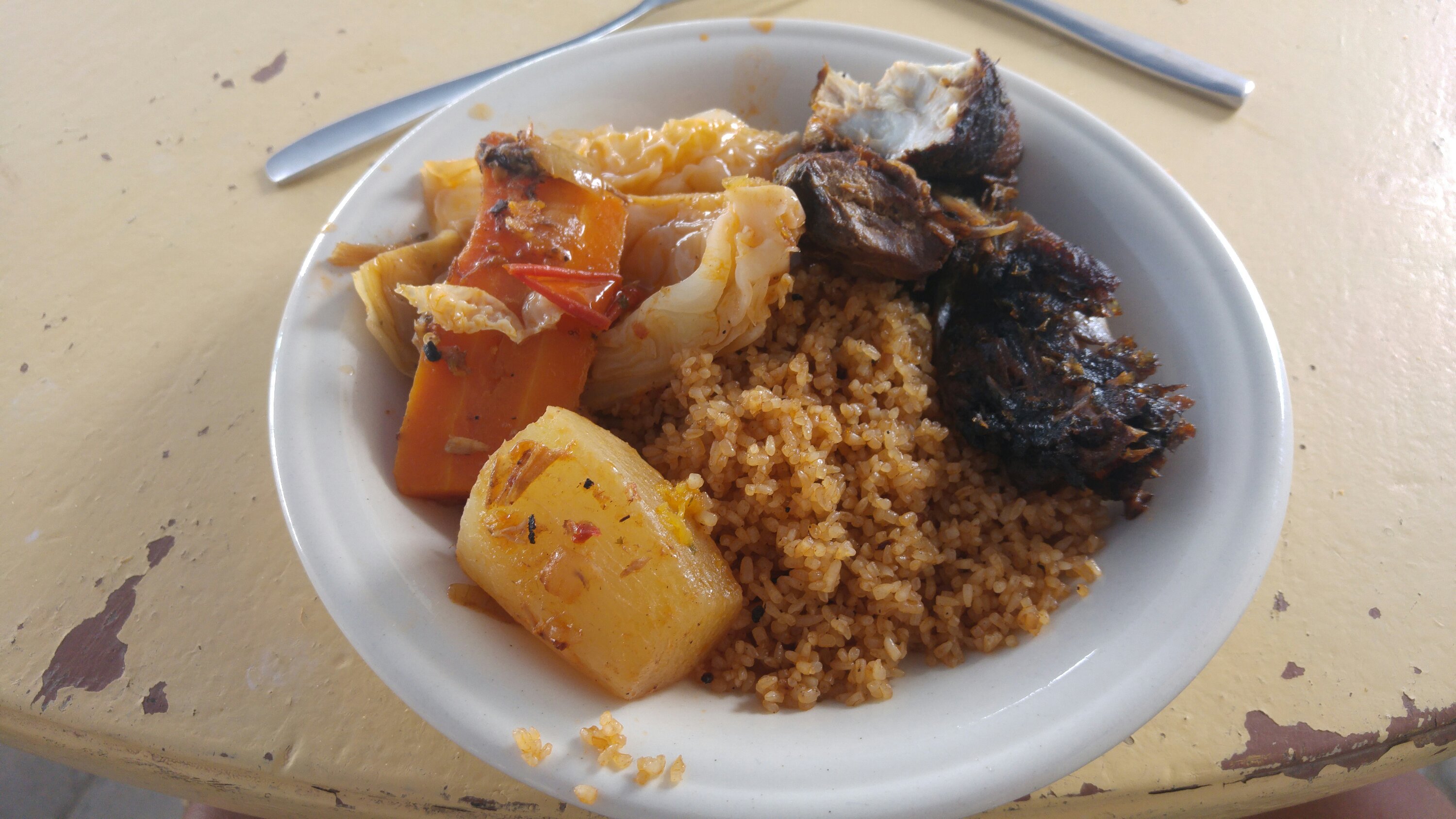 Beim Tanken wollten sie uns ein wenig bescheißen, aber nicht mit uns. Bei mir stand auf einmal eine andere Zahl auf der Tanksäule als ich das letzte Mal hin sah. Kleine Diskussion und er sah ein, das es keinen Zweck hat. Bei Frank wollte er weniger Tanken als er ihm Geld gegeben hatte, aber auch der Versuch schlug fehl. Dann sind wir in die Stadt gefahren. Unglaublich wie es dort aussieht. Überall Müll, überall Sandpisten abseits der Hauptstraße, aber auch auf einmal inmitten der Straße. Eben noch Asphalt, dann ein großes Sandloch. Der Verkehr chaotisch. Blinker, Lampen oder ähnliches braucht man nicht. Ampeln sind nur Warnhinweise, Spurführungen bzw. Begrenzungslinien sind auch nur Empfehlungen… Eselskarren, Motorroller, PKWs, LKWs und Busse fahren kreuz und quer. Fahrzeuge fahren hier rum, die hat man in Deutschland schon seit 30, 40 Jahren nicht mehr gesehen, alte Mercedes-Hauben-LKWs, alte 190er Benz usw. Aber alle fahren noch und sind im Einsatz. Trotz desssen sind wir gut durchgekommen und konnten aufatmen als wir wieder vor den Toren der Stadt waren. Danach gab es Mittag auf dem Campingplatz.