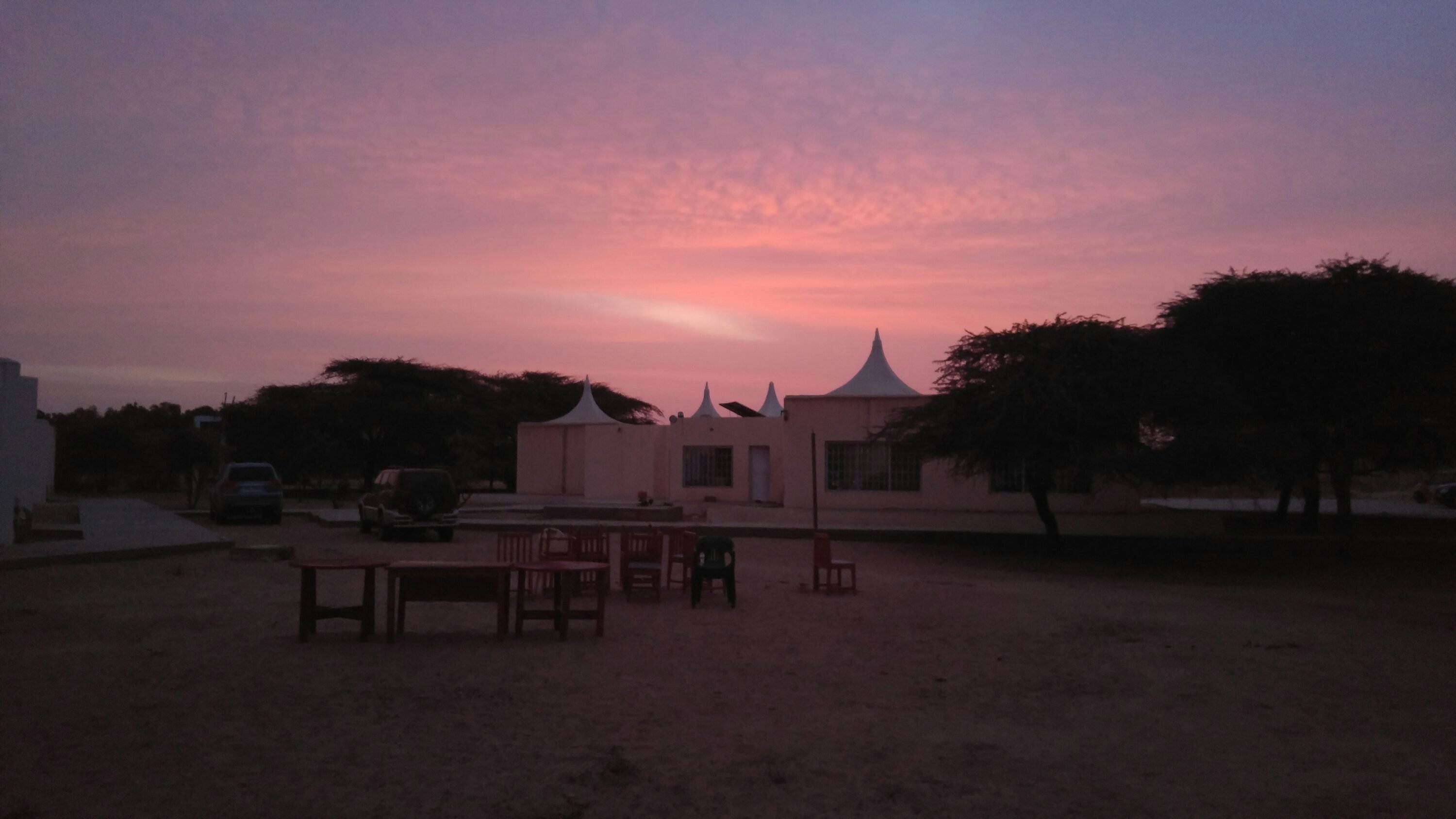 Gegen 10 Uhr ging es vom Campingplatz los. Die Etappe heute ist kürzer als sonst, da wir noch nicht nach St. Louis können. Wir werden im Park Djawling die Nacht verbringen, kurz vor der senegalesischen Grenze. Aber erstmal mussten die rund 450 km überwunden werden. Kurz vor dem Ende der Stadt, war der Treffpunkt zum Start für den heutigen Tag. Die Nordhäuser mussten noch auf ihren Omega mit der defekten Kupplung warten, sodass Falk (Org) mit vor Ort blieb. Zunächst ging es auf Asphalt Richtung Süden. Doch bald wandelte sich die Straße in Baustellen, Sandpisten neben der Straße. Später entwickelte sich die Straße zum berühmten senegalesischen Schlaglochbingo, obwohl wir noch in Mauretanien sind… Auf der neuen Teerstraße, die vor zwei Jahren noch Baustelle war, machten wir gegen 14 Uhr Mittagspause bei 40 °C. Danach führte uns der Weg in den Nationalpark „Parque Djawling“ über den Damm zum Campingplatz. Plötzlich ändert sich die Vegetation, Bäume, Sträucher und Wasser. Der Weg über den Damm ist wie üblig nur „fester“ Boden ohne Asphalt. Teilweise wird auf dem Damm gefahren, teilweise daneben, je nach dem wo es besser zum Fahren aussieht. Ab und zu sieht man eine Warzenschweinhorde, Flamingos und Kühe. Kurz vor der Dämmerung erreichten wir den Campingplatz. Erstaunlicher Weise blieben alle Fahrzeuge heil, keine Verluste! Nach einem leckeren Abendbrot, ließen wir den Abend bei ein, zwei Bierchen ausklingen. ?
