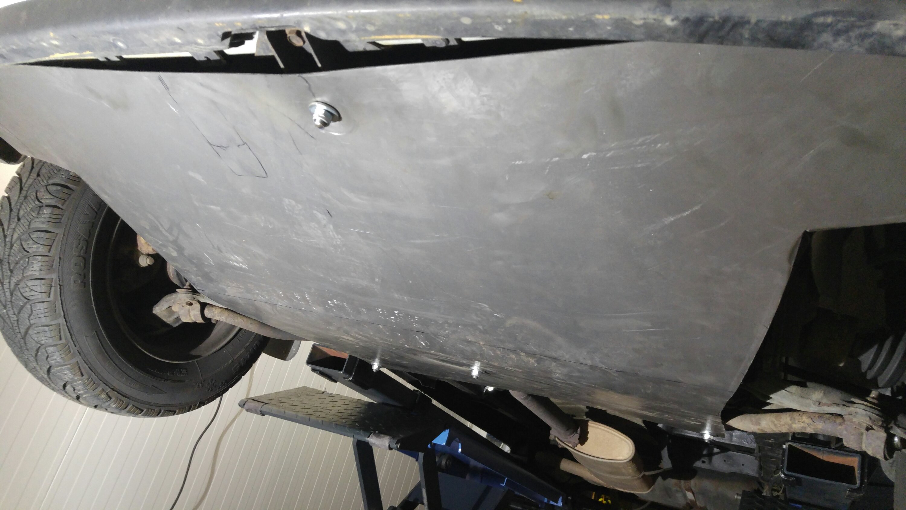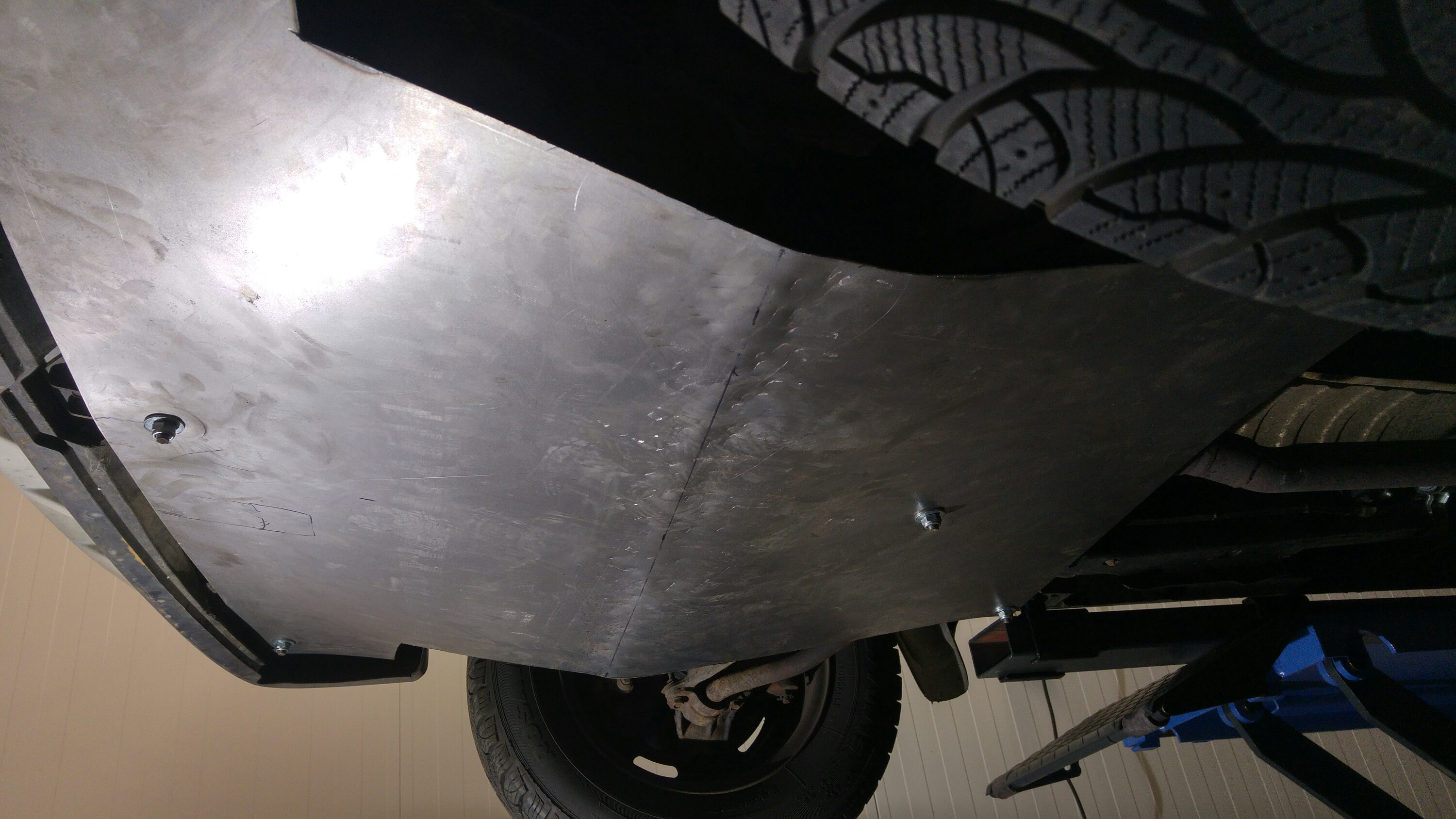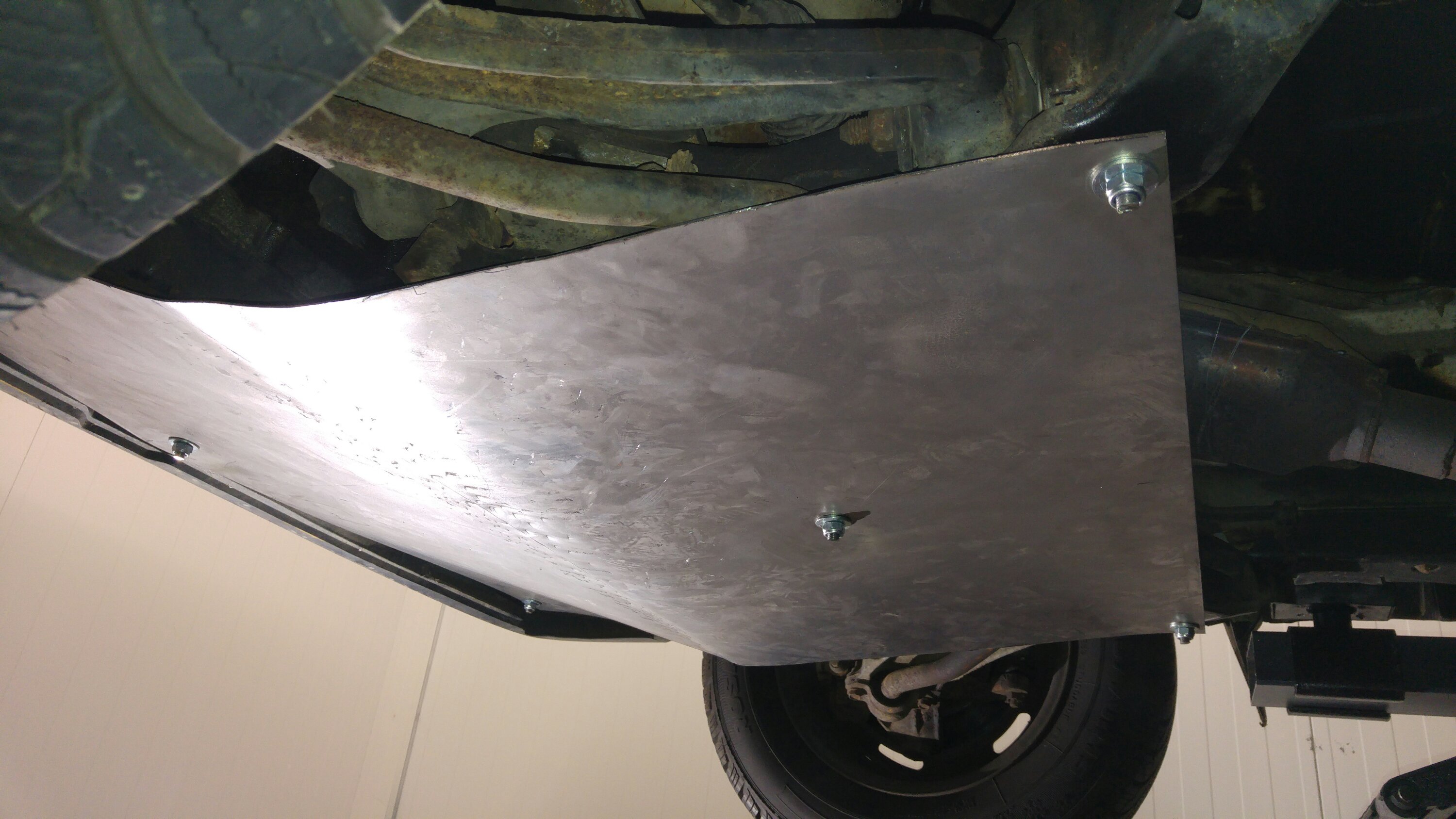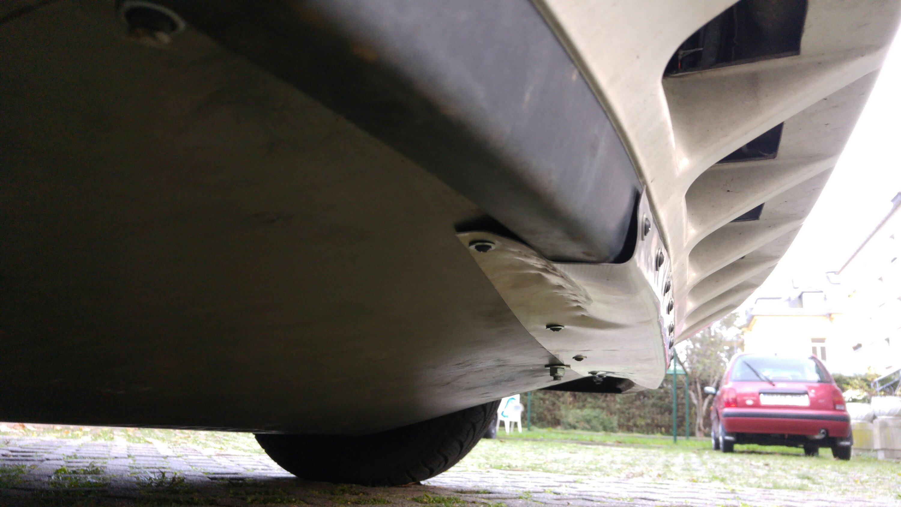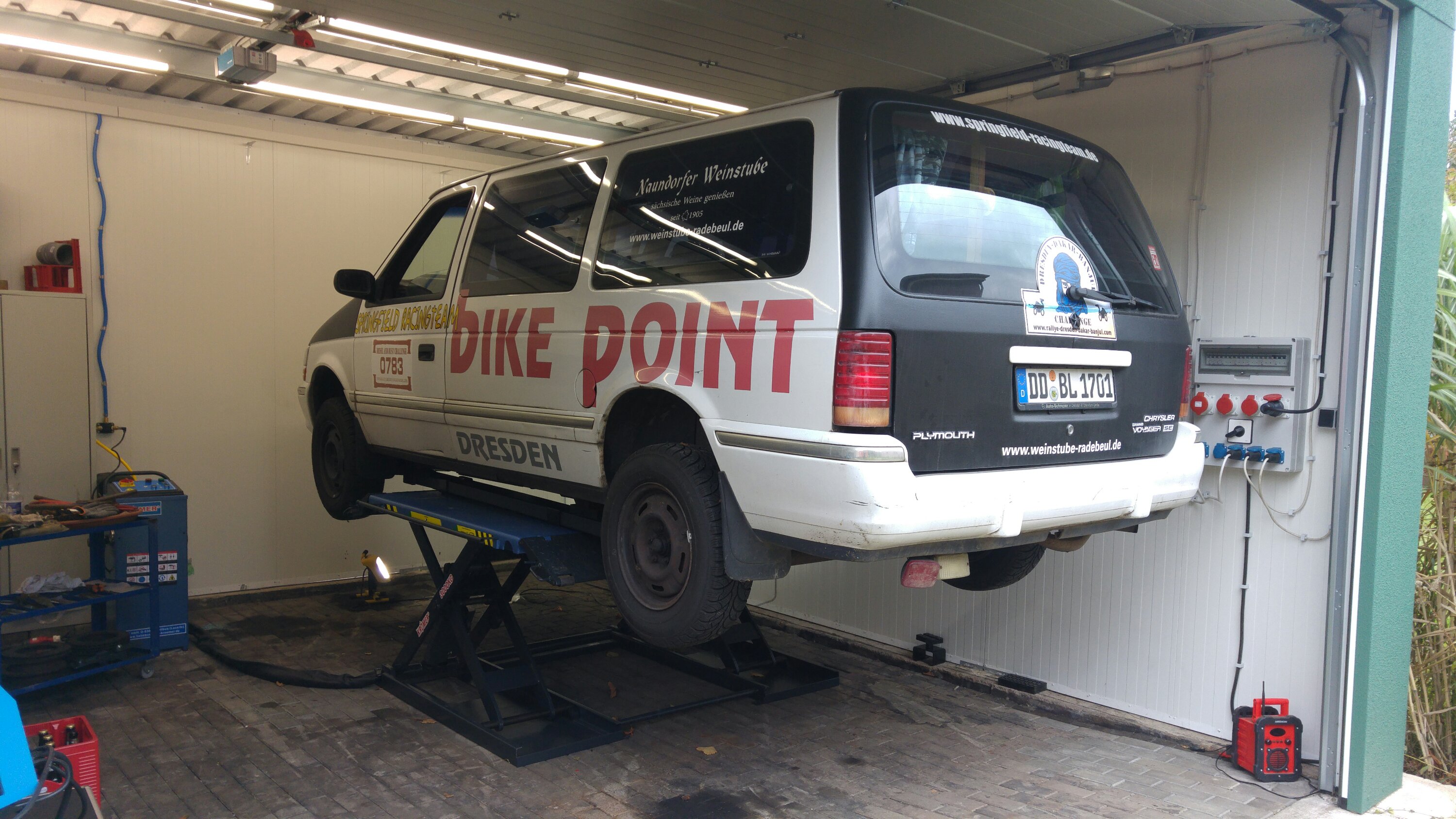 Noch 5 Tage und wenige Stunden bis zum Start. In der vergangenen Woche ist so einiges passiert… Am Chrysler wurde der Unterfahrschutz fertig gestellt, nachdem ich merkte, dass das Ding unmögliche Windgeräusche machte. Dazu wurde noch ein zusätzliches Blech angeschraubt, welches einen kleinen Spalt zwischen Unterfahrschutz und Stoßstange schließt.