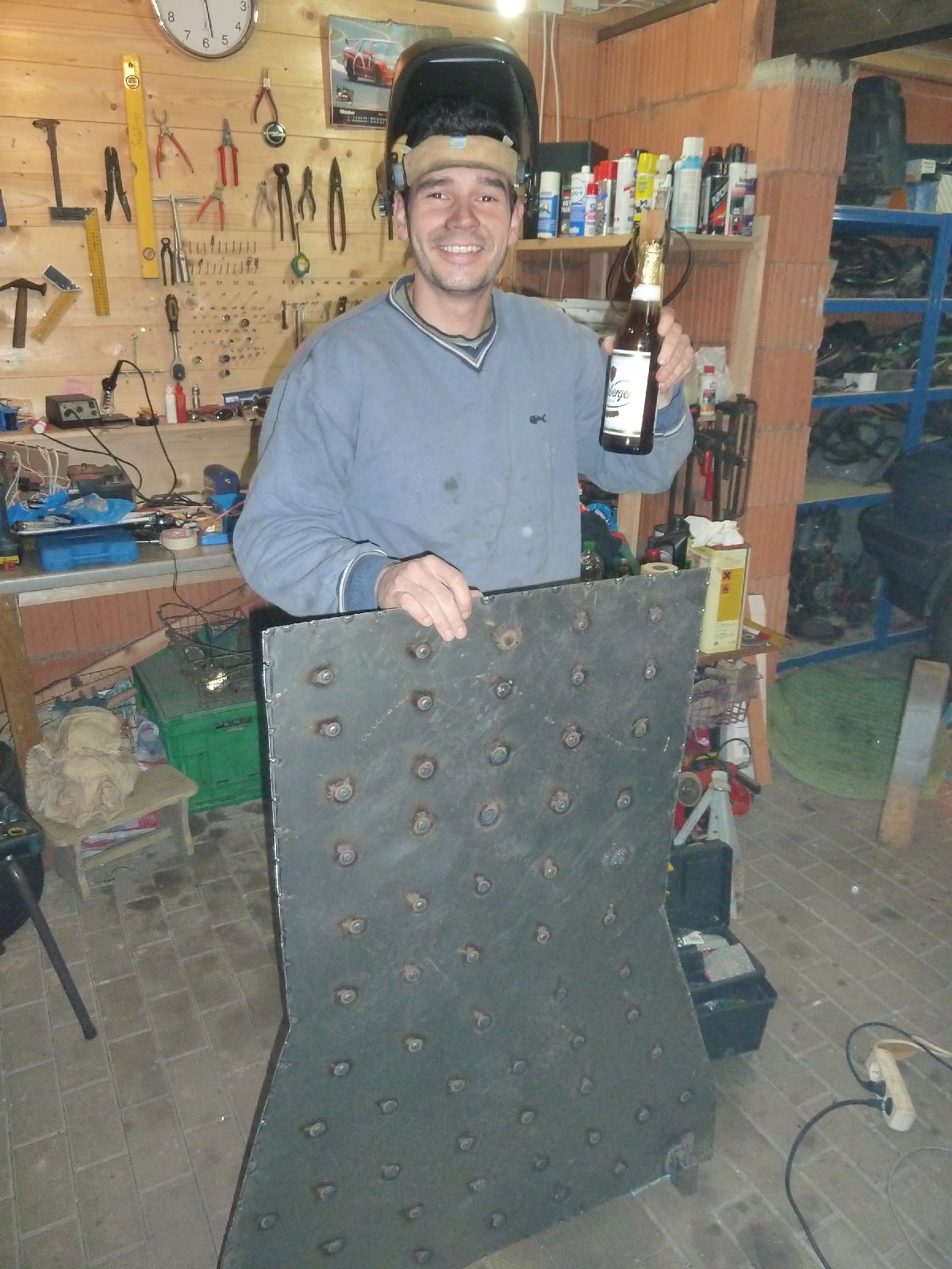 Schön wäre es, aber leider gibt es noch mehr zu tun. Neben einem großen Unterbodenschutz der wie in den Bildern zu sehen ist extra angefertigt und geschweißt werden muss, kümmern wir uns um die richtige Beschriftung unseres Autos. Schließlich müssen wir ja auch erkennbar sein. Eine 220-Volt-Steckdose für unsere elektronischen Spielzeuge ist schon eingebaut und wartet auf ihren ersten Test.