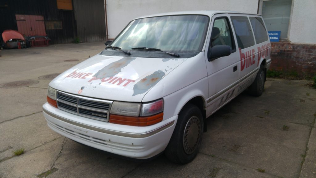 Anfang des Jahres war die große Frage, mit welchem Fahrzeug soll es diesmal nach Gambia gehen? Bus, Kombi, Pick-Up oder etwas ganz anderes? Da stand zufällig beim KFZ-Mechaniker (Vielen Dank an dieser Stelle an Steffen und dem Auto-Service Barth) meines Vertrauens ein Chrysler Voyager, Baujahr 1991 und nur 180.000 km. Hm, nun, warum eigentlich nicht? Wäre doch ein schönes Reisemobil, groß, geräumig, 3,3 Liter Hubraum und mal etwas anderes, ein Ami. Nur der gehörte noch jemand anderem. Also Kontakt hergestellt und nachgefragt und nach kurzer Überredung, wechselte das Fahrzeug für ein paar Euro den Besitzer. Vielen Dank dafür an Adam vom BIKE POINT Dresden für das Fahrzeug.