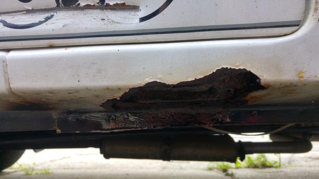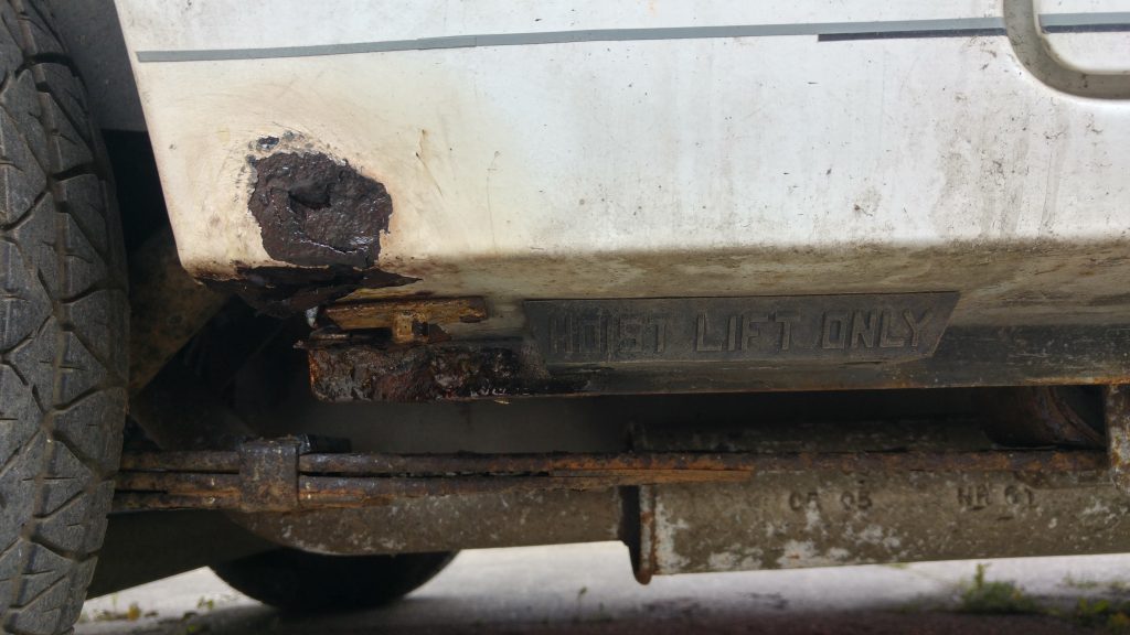 Neben korrodierten Kabel und Steckern im Motorraum, haben die Schweller im Laufe der Zeit erheblich gelitten.