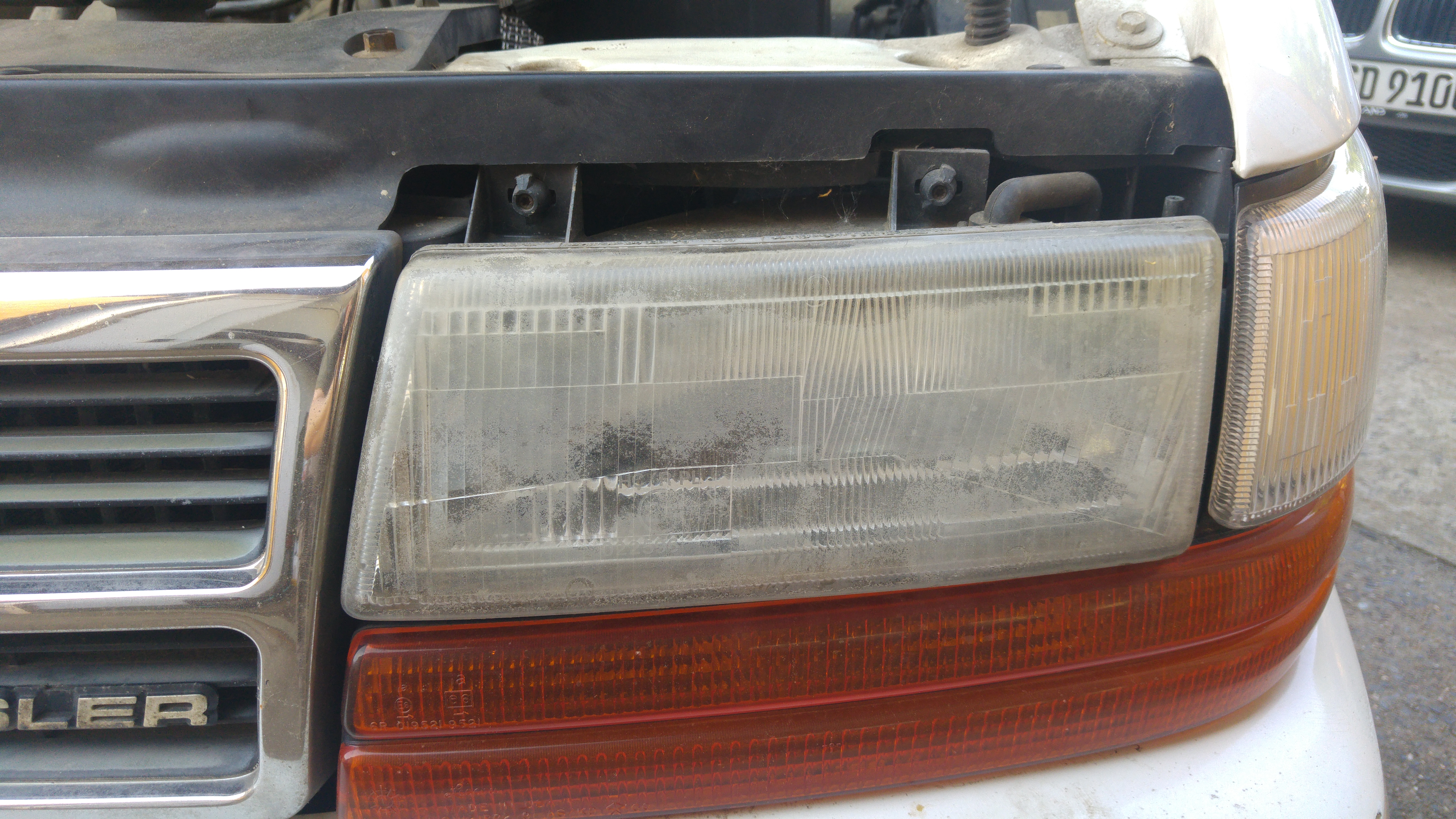 Für einen guten Durchblick der Scheinwerfer muss allerdings noch gesorgt werden. Die sind durch Sonne, Regen und viel Zeit etwas erblindet.