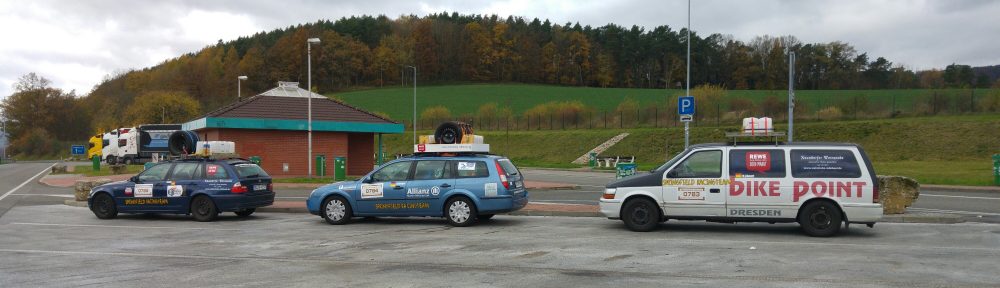 Nach knapp 800 km und ca. 9,5 h haben wir unser Ziel erreicht. Einen schönen Campingplatz in der Nähe der französischen Grenze. Die Rallyeboliden sind heute wunderbar gelaufen, keine Probleme, alles hübsch! Toi, toi, toi! Heute Nacht wird nach einem zünftigen Linseneintopf das erste Mal im Auto genächtigt. Morgen geht’s dann ins Schlumpf-Museum und weiter, wenn das Wetter passt, Richtung Toulouse.