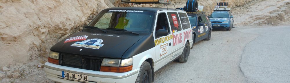 Noch ein paar Höhenmeter bis zu einem Hochplateau und dann ist es passiert… Was mit ein paar Tropfen auf der Windschutzscheibe begann, endete in einem auslaufenden Kühler. Beim Chrysler lief das Kühlwasser aus. Gott sei Dank waren Falk und das Serviceteam, bestehend aus Falko und Sören mit dabei.