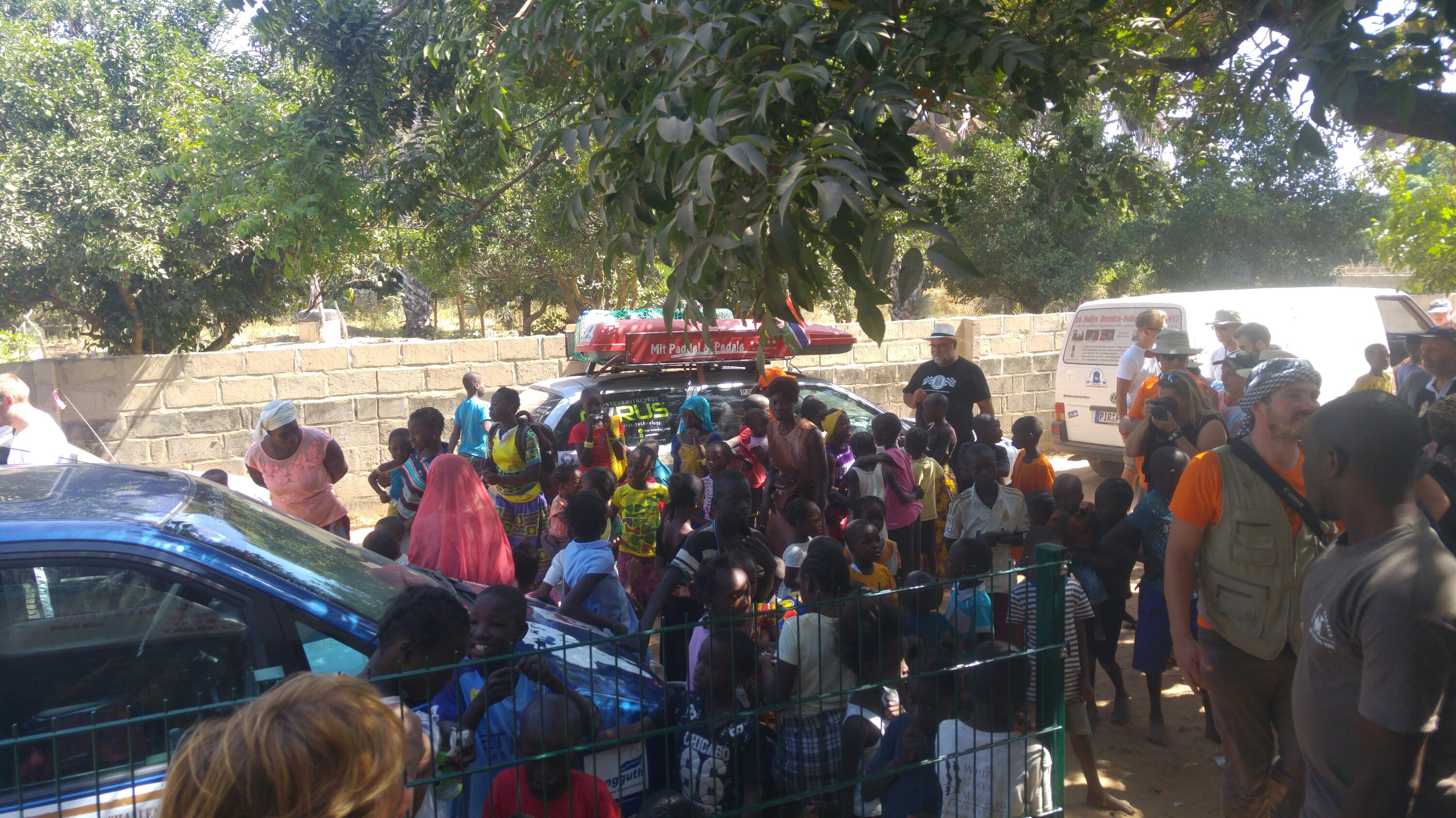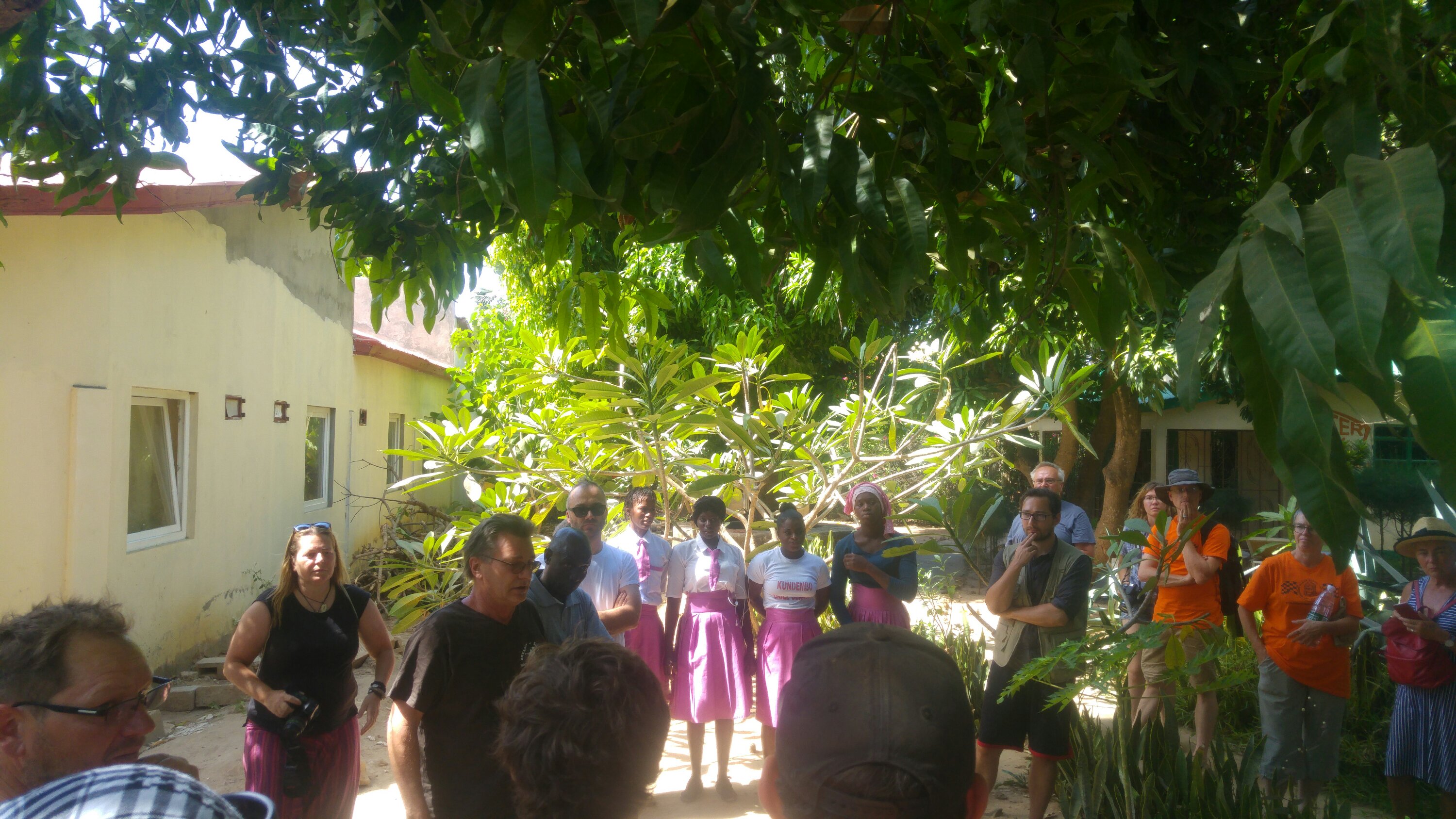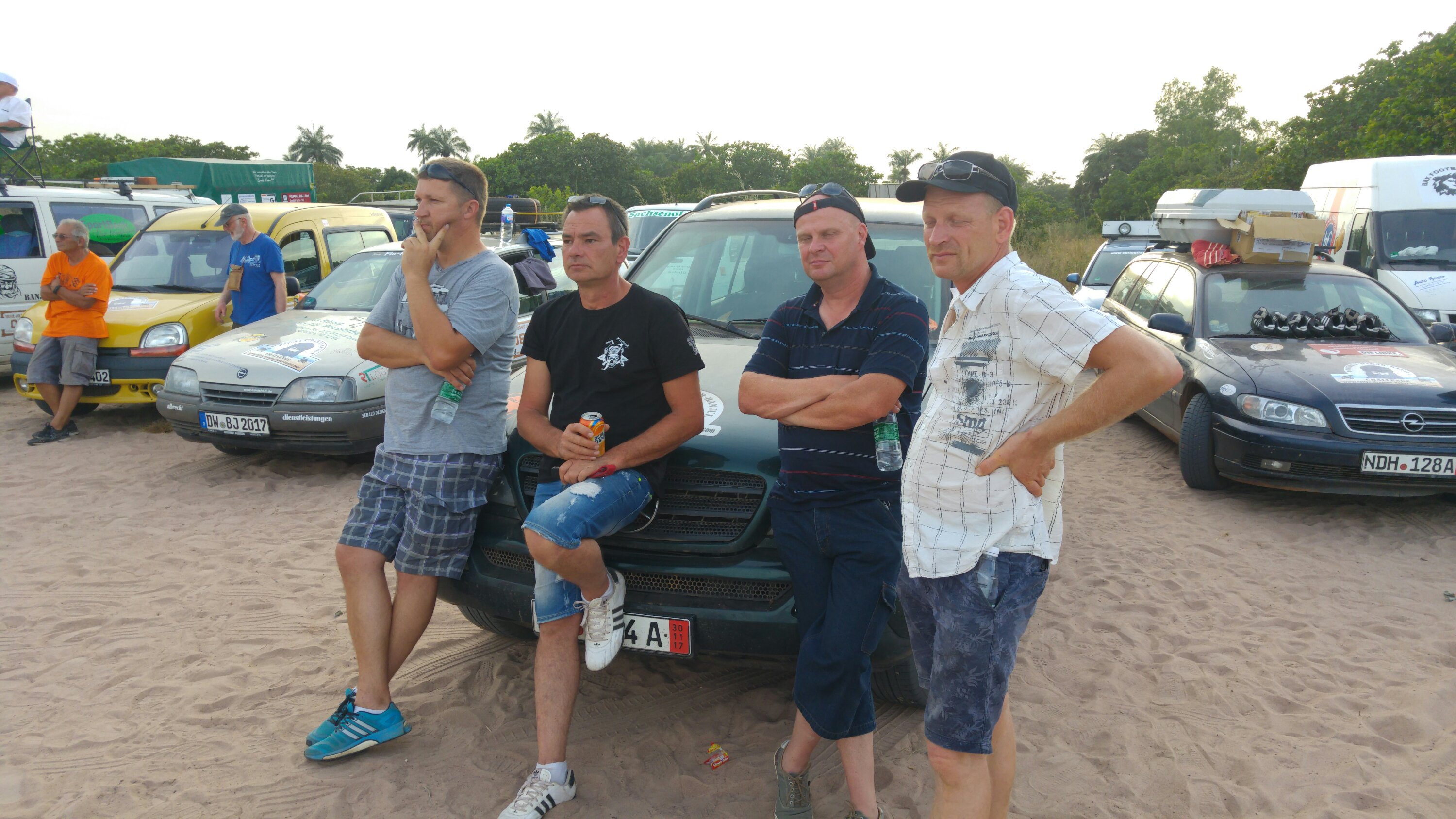 Am heutigen Samstag sind die ersten Projektbesichtigungen der DBO vorgesehen. Also Treff bei Heinz und dann Abfahrt nach Gunjur, ein Dorf ca. 30 km von Serekunda entfernt. Übrigens befinden wir uns in Serekunda und nicht in Banjul, Banjul ist zu groß und zu weit von der DBO entfernt, die befindet sich in Sukuta, die Nachbarstadt von Serekunda. Nur das als Einschub. Als erstes stand das Health Center von Sol in Gunjur auf der Tagesordnung. Sol betreibt eine kleine Krankenstation, ein Aufklärungsangebot und eine Näherinnen-Ausbildung. Letzteres ist mur für Frauen gedacht, da hier normalerweise nur Männern das Nähhandwerk vorbehalten ist. Für die Frauen aber ist es wichtig um sich ihren Lebensunterhalt verdienen zu können, da diese meist aus unterschiedlichsten Gründen aus ihren Familien ausgestoßen worden. Die Krankenstation ist hier sehr beliebt, weil sie vor allem den Ärmeren hilft. Für 20 Dalasi werden die Patienten hier bis zur vollständigen Genesung und mit allen nötigen Medikamenten bis zum Schluss versorgt. In staatlichen Einrichtungen wird für das gleiche Geld nur eine Erstversorgung gewährleistet. An dieser Krankenstation haben wir einige Spendengüter, darunter Brillen, Stifte, Spielzeug für die kleinen Patienten, Hygientücher und andere Hygieneartikel abgegeben. Einen Extra-Dank an die heimischen Spender. Mit diesen „kleinen“ Dingen kann hier vielen Menschen geholfen werden! Nach der Krankenstation ging es weiter in die Kobisala-School. Diese Schule hat sozusagen mit einem Klassenraum als Nursery-School begonnen. Mittlerweile wurde das Schulgebäude zweimal erweitert und beherbergt noch eine Primary-School. Die Nursery-School ist eine Art Vorschule, wo 4- bis 6-jährige Englisch lernen, damit sie dann in der Grundschule lernen können. Denn Englisch ist die Kommunikationssprache an den Schulen hier in Gambia. Die Primary-School ist die Grundschule. Der Schulleiter, Buba Bojang, der Kobisala-Schule unterrichtet nicht nur selbst sondern bildet sich mittlerweile weiter um in den nächsten Jahren eine Secondary-School eröffnen zu können. Das heißt, die Kinder können bis zum Schulabschluss an der Schule bleiben und lernen. Ein Lehrer mit Leib und Seele! Die Kinder an der Schule kommen aus dem Dorf und sind meist aus ärmlichen Verhältnissen. Das Schulgeld ist sehr gering, damit sich auch die armen Familien das leisten können. In den letzten vier Jahren ist hier wirklich viel passiert. Es wurde das Schulgebäude um ca. die Hälfte erweitert. Des Weiteren unterstützt die DBO durch Zahlung von Lehrergehältern und teilweise auch Schulgelände. Alles durch die Rallye ermöglicht! Auch an dieser Stelle haben wir einige Spendengüter abgegeben, darunter Stifte, Papier, Spielzeug u.ä. Vielen Dank auch an dieser Stelle an die Unterstützer aus der Heimat, die uns die Spenden, aber auch bei der Tour unterstützt haben! Danke! Am Nachmittag gab es dann eine kleine Auszeit am Strand von Sangyang bevor es dann zum Fußballspiel geht. Dort gibt es eine kleine Strandbar mit der sogenannten „Wall of Fame“ auf der sich die Rallye-Teilnehmer verewigen können. Natürlich haben auch wir das wieder getan und stehen mittlerweile zum vierten Mal auf dieser Wand. Am späten Nachmittag ging es dann wieder ins Dorf zurück auf den Fußballplatz. Wobei Fußballplatz kann man das nicht nennen, ein welliger Sandplatz mit zwei Toren bestehend aus zwei schiefen Holzstämmen und die Latte war ein gespanntes Seil… Nichtsdestotrotz spielten heute die Dorfauswahl Sangyang gegen die Rallye-Auswahl. Leider verloren wir das Spiel mit 1:3. Aber egal, Hauptsache es macht Spaß. Am Spielfeldrand gaben die einheimischen Trommler und Tänzer ihr bestes, um gute Stimmung zu verbreiten. Danach ging es zu Holly und Torsten auf’s Grundstück zum gemütlichen Nachfußballbierchen…