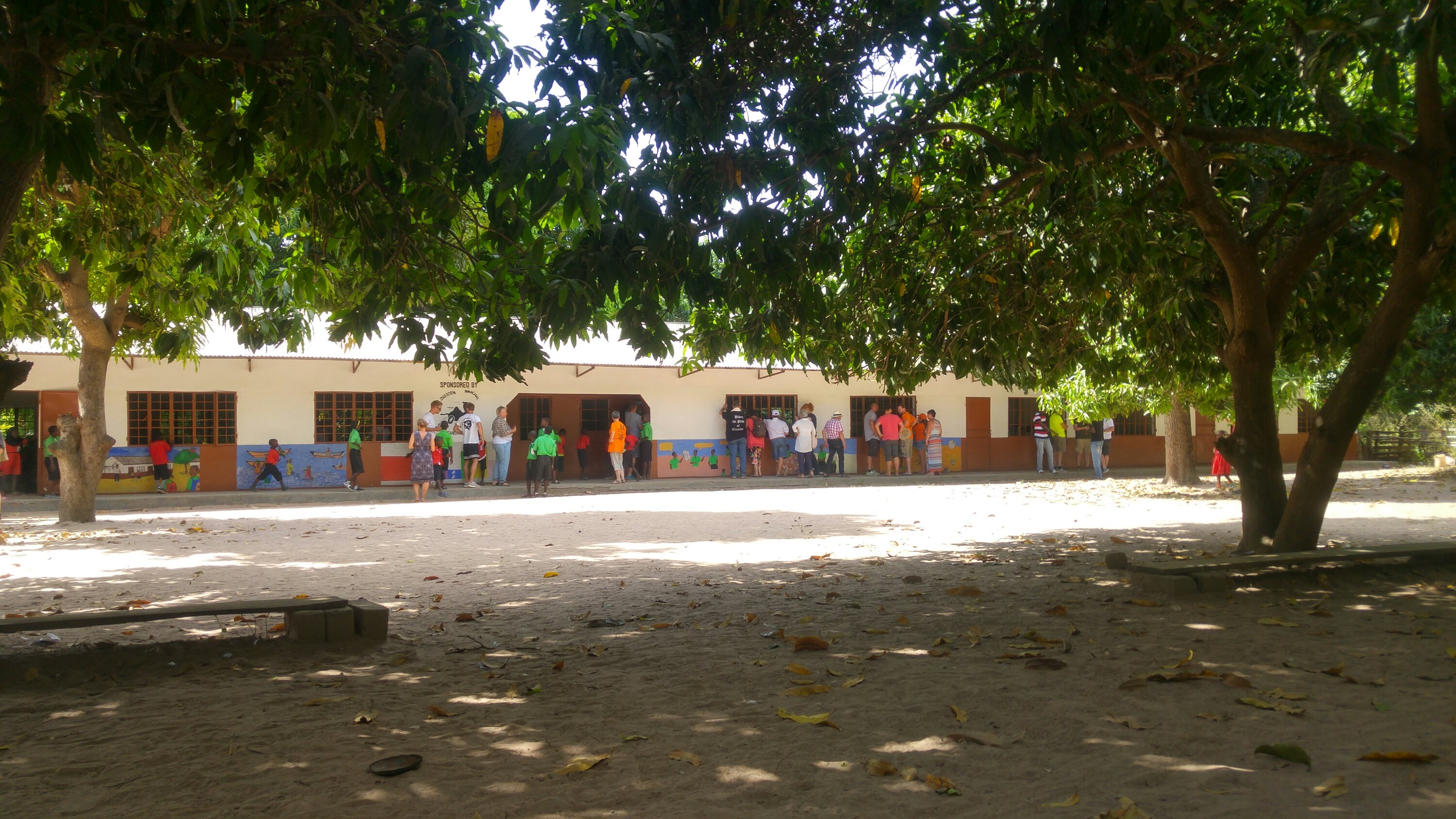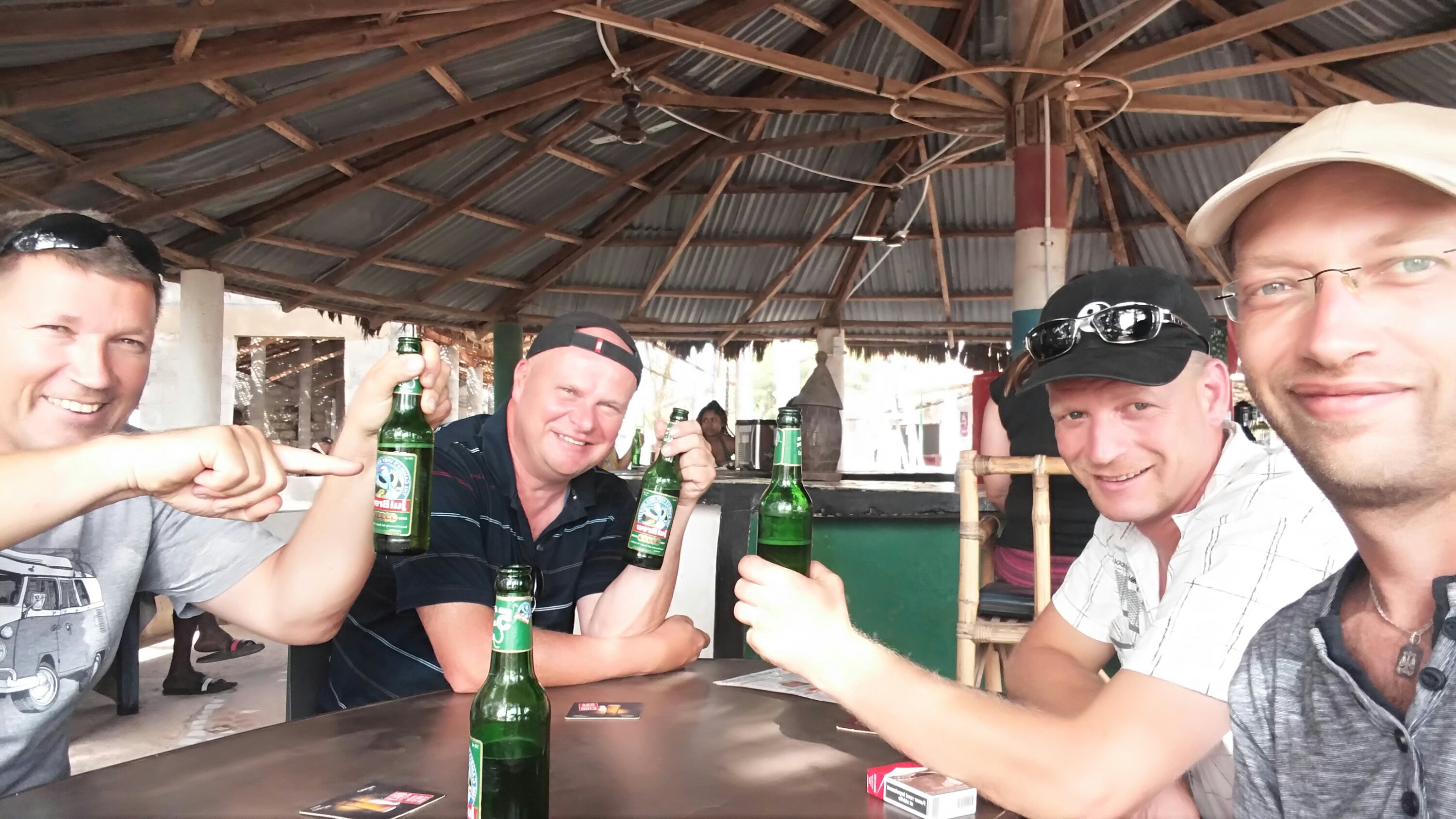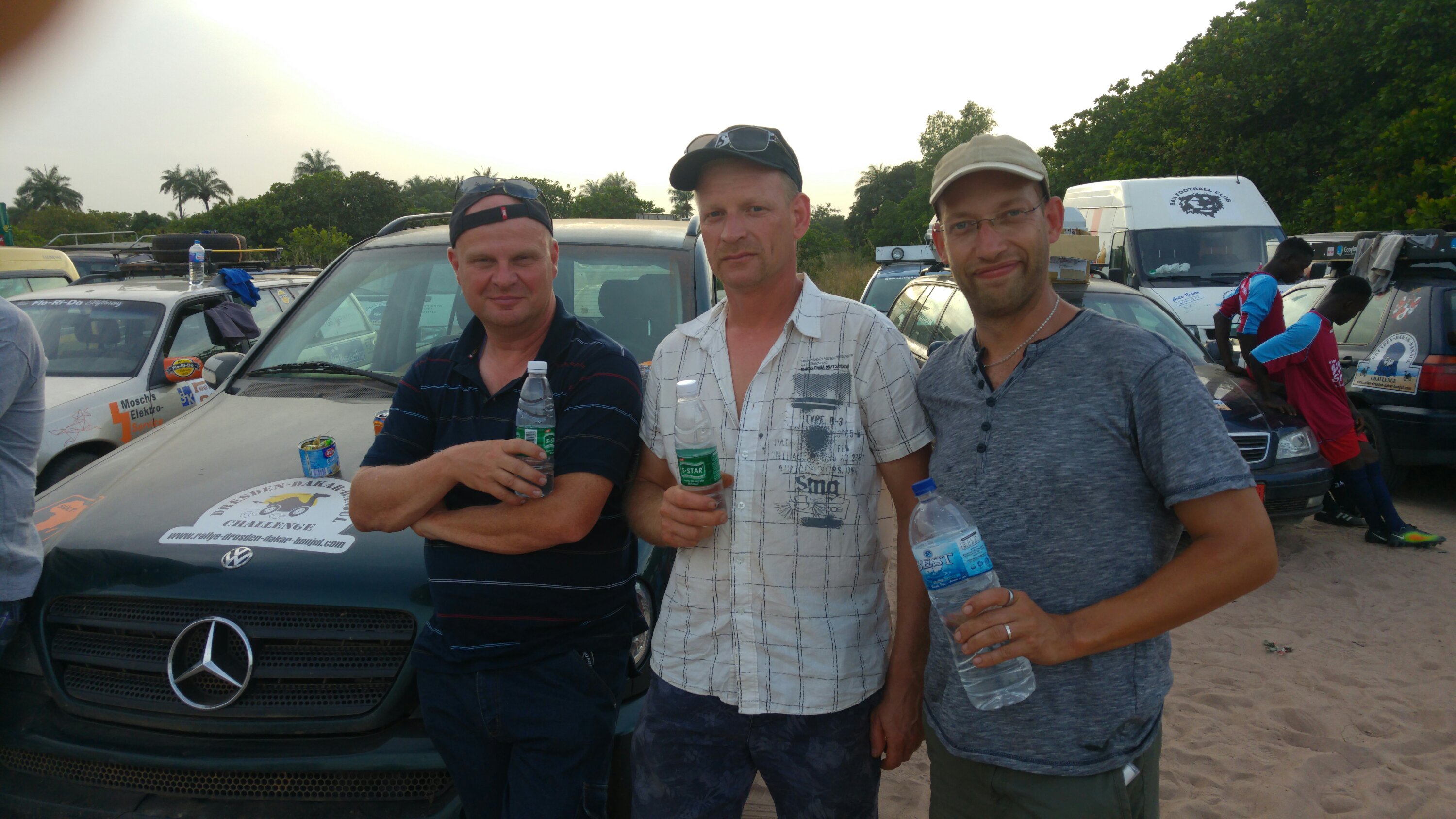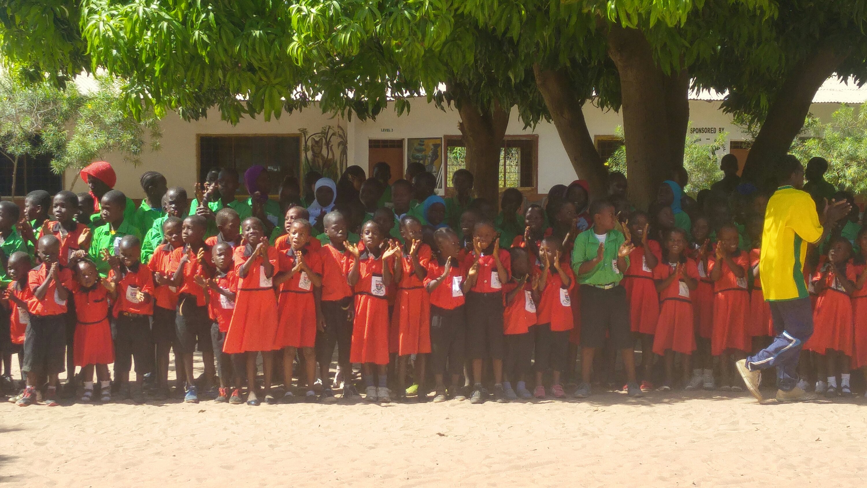 Am heutigen Samstag sind die ersten Projektbesichtigungen der DBO vorgesehen. Also Treff bei Heinz und dann Abfahrt nach Gunjur, ein Dorf ca. 30 km von Serekunda entfernt. Übrigens befinden wir uns in Serekunda und nicht in Banjul, Banjul ist zu groß und zu weit von der DBO entfernt, die befindet sich in Sukuta, die Nachbarstadt von Serekunda. Nur das als Einschub. Als erstes stand das Health Center von Sol in Gunjur auf der Tagesordnung. Sol betreibt eine kleine Krankenstation, ein Aufklärungsangebot und eine Näherinnen-Ausbildung. Letzteres ist mur für Frauen gedacht, da hier normalerweise nur Männern das Nähhandwerk vorbehalten ist. Für die Frauen aber ist es wichtig um sich ihren Lebensunterhalt verdienen zu können, da diese meist aus unterschiedlichsten Gründen aus ihren Familien ausgestoßen worden. Die Krankenstation ist hier sehr beliebt, weil sie vor allem den Ärmeren hilft. Für 20 Dalasi werden die Patienten hier bis zur vollständigen Genesung und mit allen nötigen Medikamenten bis zum Schluss versorgt. In staatlichen Einrichtungen wird für das gleiche Geld nur eine Erstversorgung gewährleistet. An dieser Krankenstation haben wir einige Spendengüter, darunter Brillen, Stifte, Spielzeug für die kleinen Patienten, Hygientücher und andere Hygieneartikel abgegeben. Einen Extra-Dank an die heimischen Spender. Mit diesen „kleinen“ Dingen kann hier vielen Menschen geholfen werden! Nach der Krankenstation ging es weiter in die Kobisala-School. Diese Schule hat sozusagen mit einem Klassenraum als Nursery-School begonnen. Mittlerweile wurde das Schulgebäude zweimal erweitert und beherbergt noch eine Primary-School. Die Nursery-School ist eine Art Vorschule, wo 4- bis 6-jährige Englisch lernen, damit sie dann in der Grundschule lernen können. Denn Englisch ist die Kommunikationssprache an den Schulen hier in Gambia. Die Primary-School ist die Grundschule. Der Schulleiter, Buba Bojang, der Kobisala-Schule unterrichtet nicht nur selbst sondern bildet sich mittlerweile weiter um in den nächsten Jahren eine Secondary-School eröffnen zu können. Das heißt, die Kinder können bis zum Schulabschluss an der Schule bleiben und lernen. Ein Lehrer mit Leib und Seele! Die Kinder an der Schule kommen aus dem Dorf und sind meist aus ärmlichen Verhältnissen. Das Schulgeld ist sehr gering, damit sich auch die armen Familien das leisten können. In den letzten vier Jahren ist hier wirklich viel passiert. Es wurde das Schulgebäude um ca. die Hälfte erweitert. Des Weiteren unterstützt die DBO durch Zahlung von Lehrergehältern und teilweise auch Schulgelände. Alles durch die Rallye ermöglicht! Auch an dieser Stelle haben wir einige Spendengüter abgegeben, darunter Stifte, Papier, Spielzeug u.ä. Vielen Dank auch an dieser Stelle an die Unterstützer aus der Heimat, die uns die Spenden, aber auch bei der Tour unterstützt haben! Danke! Am Nachmittag gab es dann eine kleine Auszeit am Strand von Sangyang bevor es dann zum Fußballspiel geht. Dort gibt es eine kleine Strandbar mit der sogenannten „Wall of Fame“ auf der sich die Rallye-Teilnehmer verewigen können. Natürlich haben auch wir das wieder getan und stehen mittlerweile zum vierten Mal auf dieser Wand. Am späten Nachmittag ging es dann wieder ins Dorf zurück auf den Fußballplatz. Wobei Fußballplatz kann man das nicht nennen, ein welliger Sandplatz mit zwei Toren bestehend aus zwei schiefen Holzstämmen und die Latte war ein gespanntes Seil… Nichtsdestotrotz spielten heute die Dorfauswahl Sangyang gegen die Rallye-Auswahl. Leider verloren wir das Spiel mit 1:3. Aber egal, Hauptsache es macht Spaß. Am Spielfeldrand gaben die einheimischen Trommler und Tänzer ihr bestes, um gute Stimmung zu verbreiten. Danach ging es zu Holly und Torsten auf’s Grundstück zum gemütlichen Nachfußballbierchen…