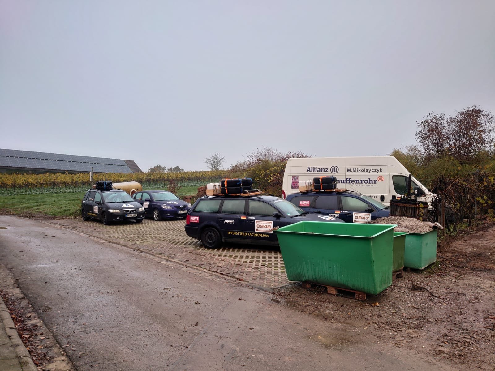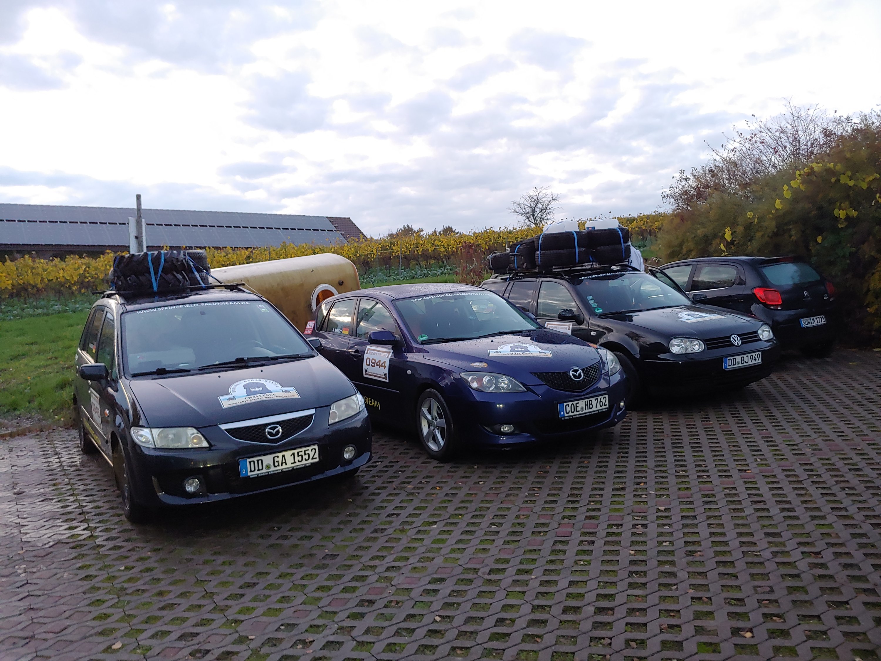 In Königsbrunn gab es eine Ansprache und Glückwünsche vom Bürgermeister, sowie Schweinebraten im Brötchen und Bier. Gegen halb eins setzte sich der Rallyetross bestehend aus den Kös und uns, geführt von der Polizei in Bewegung. Die Autos rollten und so kamen wir am späten Nachmittag in Niederhorbach an. Niederhorbach ist das Heimatdorf von Heinz, der Chef der DBO. Etwas später dann kamen unsre drei Teamkollegen aus Hohnstein ebenfalls an. Auch diese drei Auto liefen! Mit Saumagen und Bratwurst wurde zünftig gegessen und das ein oder andere Bier oder Weingläßchen getrunken. Morgen gehts dann nach Frankreich.