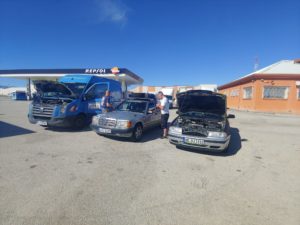 Staubig, sonnig und bergig lässt sich due heutige Etappe kurz beschreiben. Wunderschöne Landschaften, wie bei Winnetou gab es zu sehen. Mehrere kurze Stops waren notwendig, um immer wieder nach dem Kühlwasser zu sehen. Den Rest für die nächsten Wochenstand auch noch auf dem Programm. Gegen 21.30 Uhr erreichten wir den Campingplatz in San Roque. Nach einem schönen Grillerchen ging es dann ins Bett.