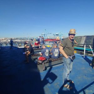 Vergleichsweise pünktlich ging es dann auch auf die Fähre und das Schiff legte ab. Dann hieß es „Tschüß Europa“, „Hallo Afrika“.