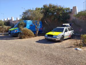 Unterwegs mussten Mario und Thomas einem Mercedes ML eines anderen Teams helfen, leider war da aber erstmal nichts zu machen, wahrscheinlich das Getriebe oder der Wandler. Danach benötigte noch ein Hyundai Terracan Hilfe mit einer Bremsleitung. Diesem konnte aber geholfen werden. Der ML wurde erstmal nach Agadir geschleppt und morgen wird geschaut, was da gemacht werden kann.