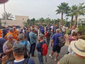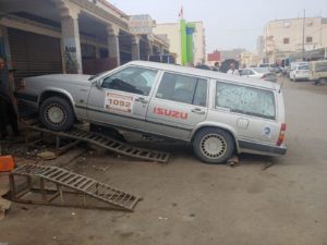 Heute Vormittag war Briefing in Dakhla angesetzt. Also fuhren wir die 50 km vom Camping in die Stadt. Beim Briefing wurde der Ablauf des heutigen Tages sowie grob die nächsten Tage erklärt. Danach ging es Tanken, Einkaufen, Wasser und Lebensmittel und natürlich durfte ein Besuch der Werkstattstraße nicht fehlen. Ein paar Rallyeteilnehmer mussten sich noch einen Unterfahrschutz montieren lassen.